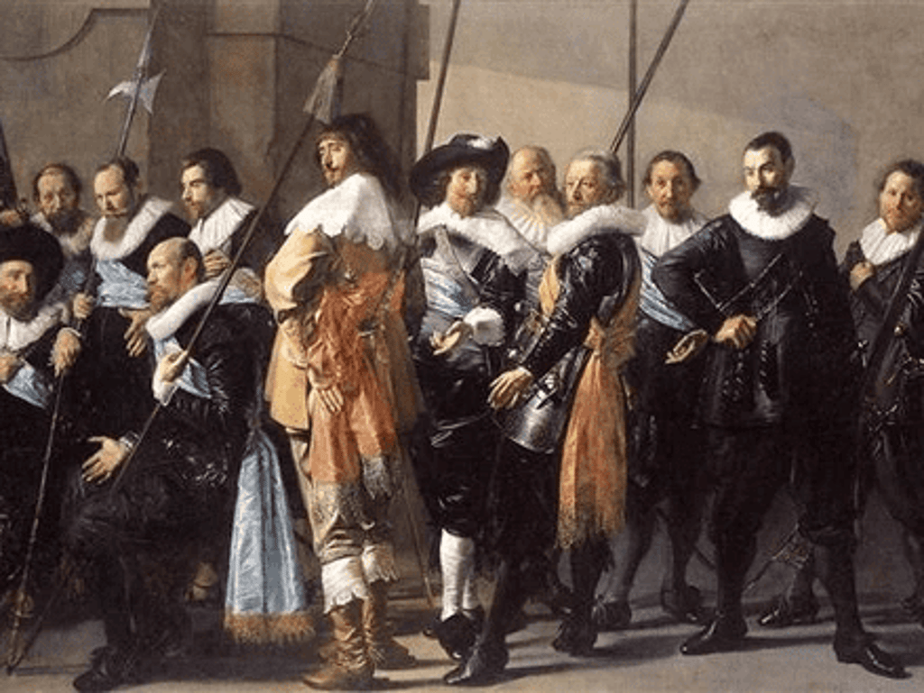 The phenomena of the military group picture has its roots in early 16th-century Dutch art. While he was alive, Frans Hals painted a number of military portraits, one of the most well-known of which being The Company of Captain Reinier Reael and Lieutenant Cornelis Michielsz Blaeuw (1633-1637).