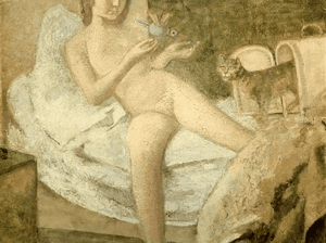 The artist plays the role of “the great masturbator,” with a female figure emerging from the base of his neck to symbolise his unspoken libidinal urges. Dali’s future wife and creative inspiration, Gala Éluard, is named. Her upper body and mouth are juxtaposed with the lower half of a man’s body, which is cut off at the knees, but is still visible from the waist up.