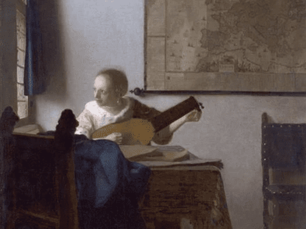 In the Metropolitan Museum of Art in New York, Vermeer’s painting “Woman with a Lute,” or “Woman with a Lute Near a Window,” is on display.